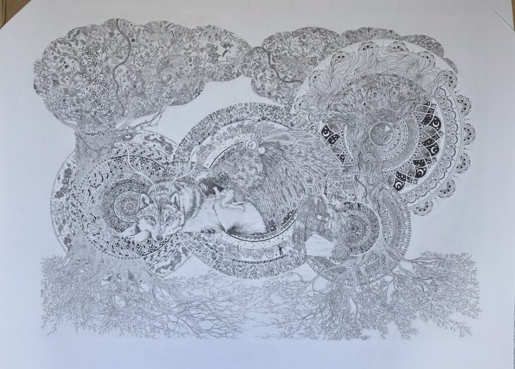 Œuvres originales dessinées à la main à l’encre, inspirées par la nature, le vivant et les formes organiques, mêlant dessin contemporain, précision du détail et symbolique.